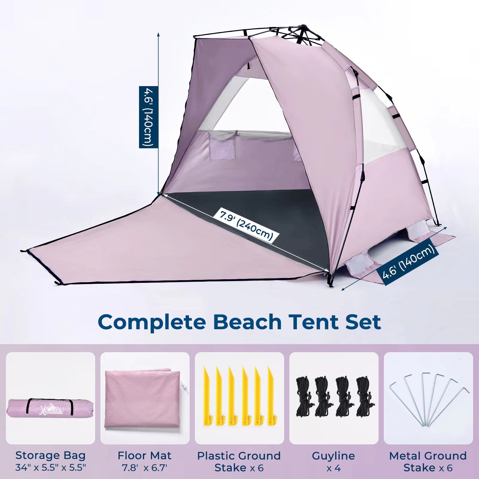 - ăAnti-UV & Sun ProtectionăSun tents for beach with sliver coating can provided UPF 50+ sun protection against harmful UV light. Reduce skin damage while resting in the shade tent. Whether you take this sun shade canopy to the beach, the park lawn or multiple places, it will always deliver weather protection.