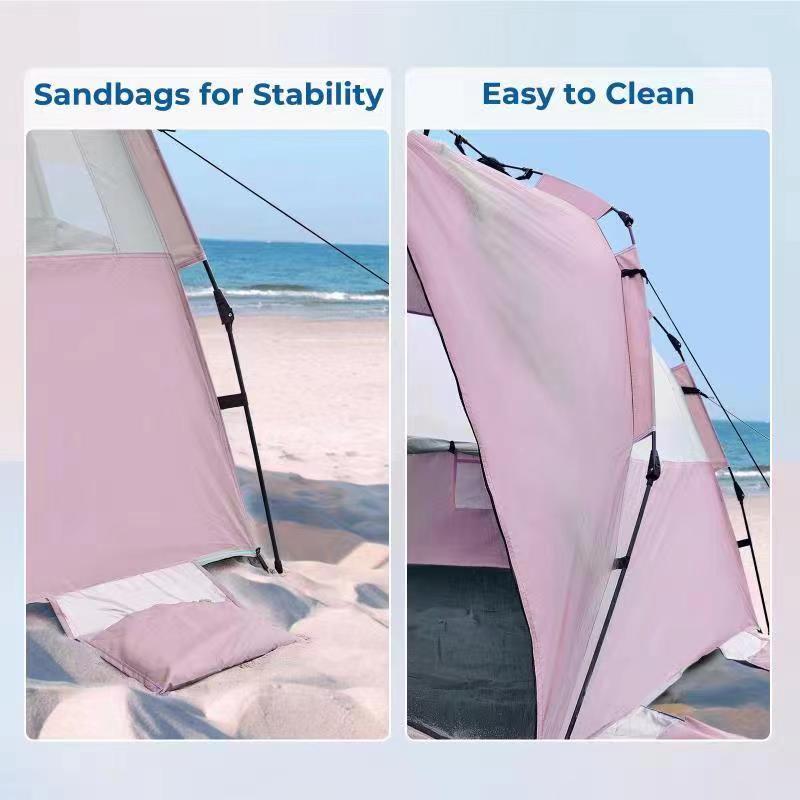 - ăDedicated Shade Tent for Comfortable ChillingăFeatured with a back window to ensure the air circulates and ventilation. The smooth airflow takes the heat away and you won't feel stuffy inside the beach tent. Additional storage pockets keep your small parts organized instead of digging sand to find them out.