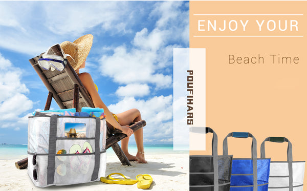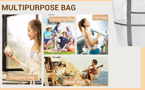 - Upgraded Mesh Beach Bag: This beach tote bag is designed to increase softness and decrease smell when going to the beach or pool, so we investigated and decided to use qualified polyester rather than PVC ripstop mesh, make it not only sandproof, quick-dry, and breathable, moreover our mesh tote bag is more skin-friendly, durable, less smell and environmentally, best beach bag you cannot miss.